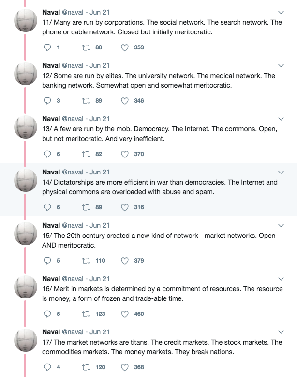 Nawal Ravikant recently did a tweet storm about the blockchain how it can disrupt current industries.